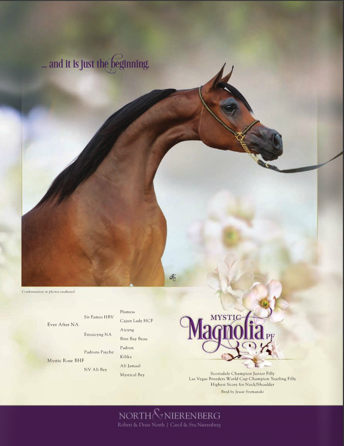 Once apon a time… came a once in a lifetime filly. The ever so beautiful Mystic Magnolia PF, sired by Ever After NA and out of Mystic Rose BHF, by Padrons Psyche, is a Scottsdale Champion Junior Filly, Las Vegas Breeders World Cup Champion Yearling Filly….and her next top, Tulsa, Oklahoma for the United States National Championships… MYSTIC MAGNOLIA PF, owned by North & Nierenberg and bred by Jessie Szymanski.
