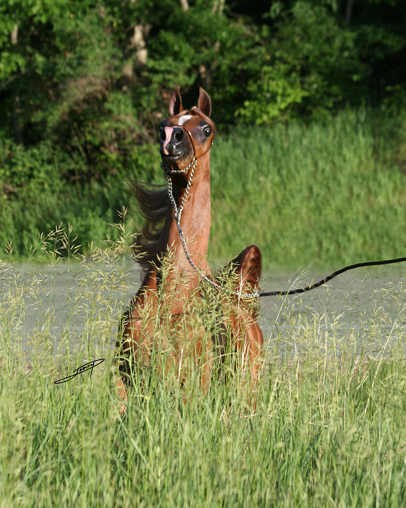 In little more than ten years, Ron and Laura Armstrong have bred horses that have made names for themselves not only in the United States, but also in Argentina, Australia, Canada, Kuwait, Saudi Arabia, and the United Arab Emirates. Their band of broodmares now numbers eight in production, daughters of Parys El Jamaal, *Besson Carol, DS Major Afire, GG Samir, Afire Bey V, and Ames Charisma.