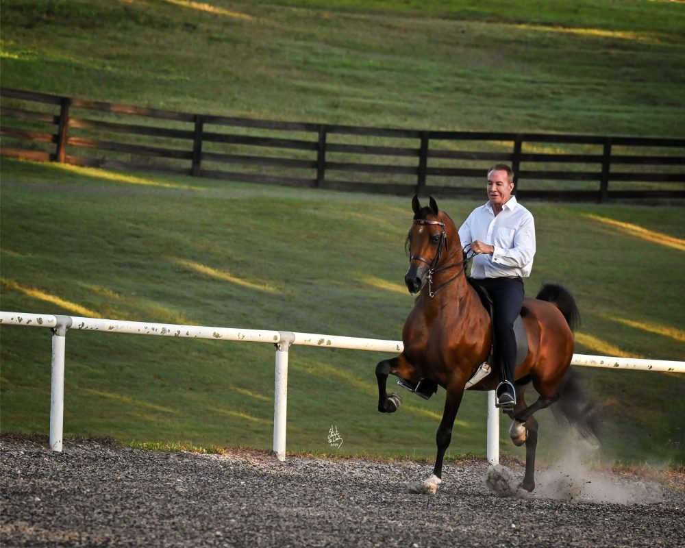Introducing Barrister DGL, sired by the illustrious Prosuasion, a Multi-National Champion English and Park horse and National Champion producing sire. Barrister’s dam is Maroon Fire-bred, Noble Blitz.
