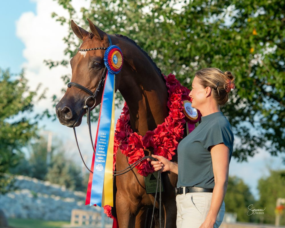 Such was the case at this past 2021 Sport Horse National Championships held at the World Equestrian Center in Wilmington, Ohio. “An outstanding representation of the Hennessey breeding program,” exclaims Frank. The show was a tremendous success, with Hennessey Arabians noted as a leading breeder of both in-hand and performance National Champion winners — in classes filled with forty-plus entries. “It has been an incredible experience for Katie and myself to own this amazingly talented horse,” says Maureen Quillin of Elma, New York, in speaking about multi-National Champion H Jupiter H++++//. “He just keeps getting better with each passing year and rounded out the show with three National Champions and four Top Tens in both in-hand and under saddle,” says Maureen. Not to be outdone by her older full brother, Believe OH, also part of the Quillin, Ltd. show string, brought home a National Championship in Sport Horse Mares In-Hand Dressage Type — a testament to the consistency of the Hennessey breeding philosophy of producing beautiful, athletic, and trainable Arabian horses.
