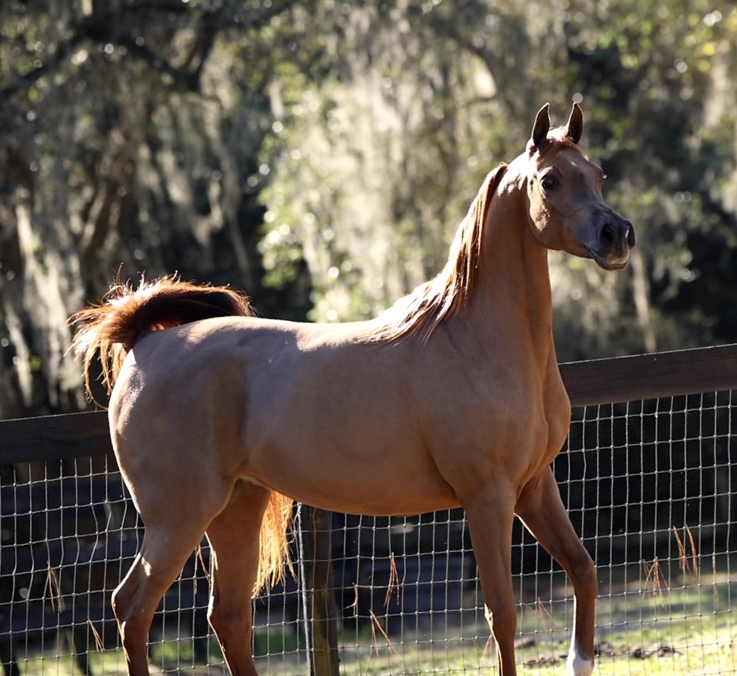 Rihanna CW (by Rhan al Shahania), 2023 Region 7 Champion Yearling Filly purchased by Paul Wood and Elaine Wood of Colonial Wood Arabians, Fort Worth, Texas.