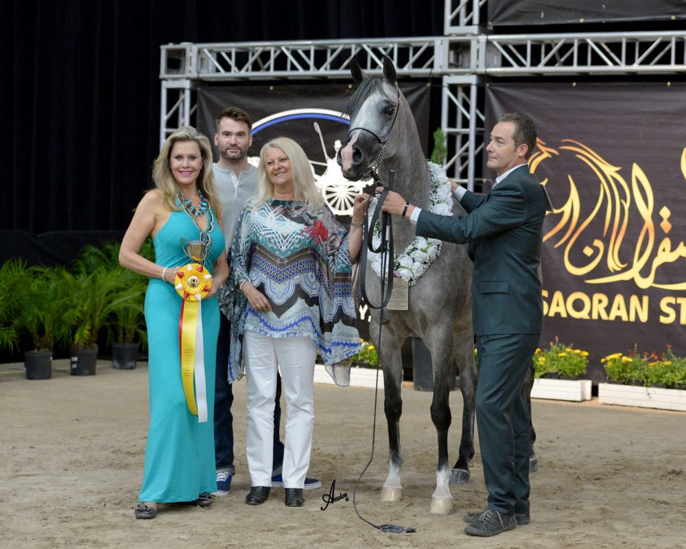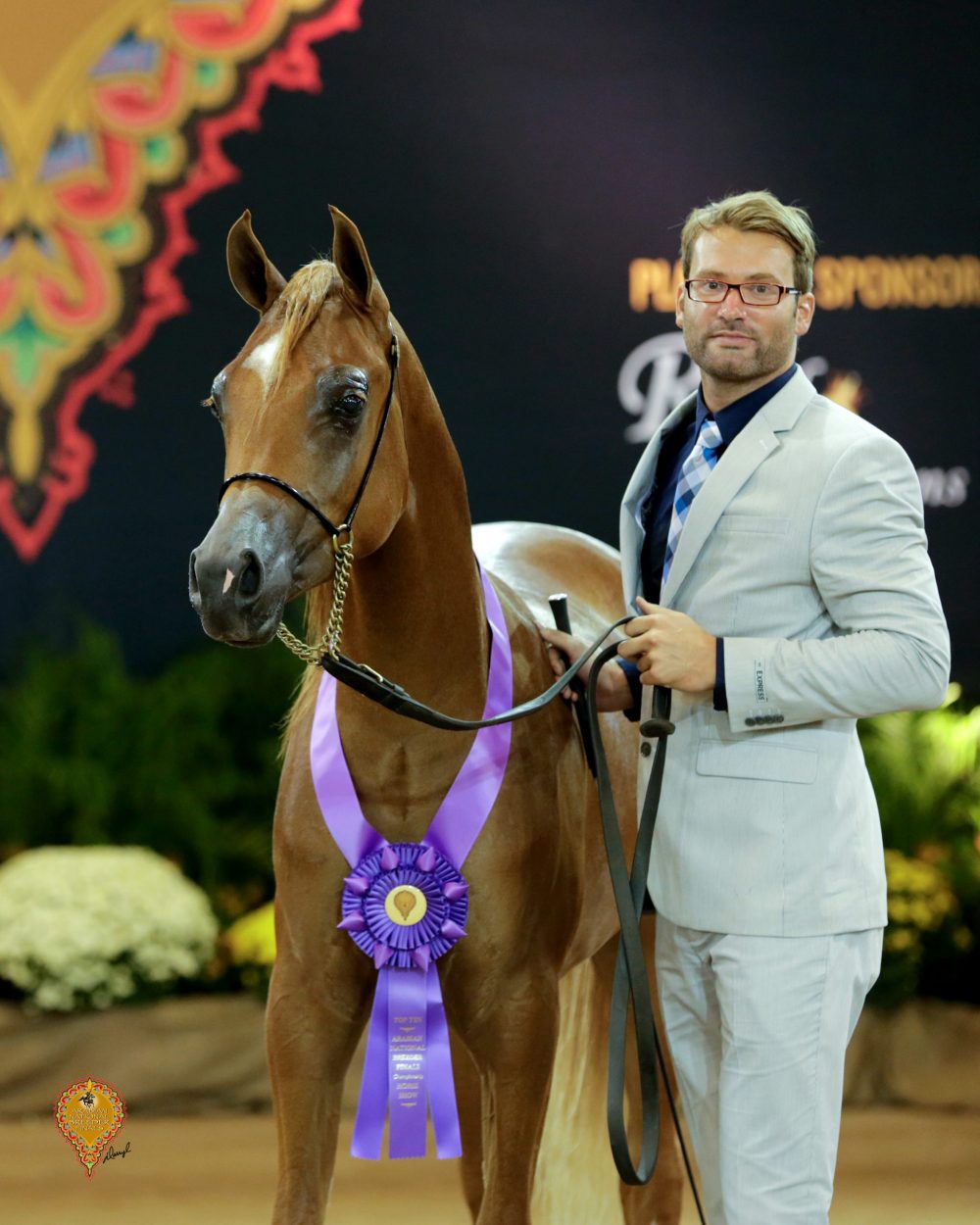 Tell us about your first Arabian. *Apollo El Jamaal was the horse that started it all for me and who started the evolution of “The Arabian Element”, the breeding division of my Arabian horse endeavors. This fiery red chestnut stallion showed me all that there was in owning an Arabian horse. Purchased as a six month old weanling colt with some of my college savings, *Apollo El Jamaal was loaded onto a truck in California and shipped across the country to Ottawa, Ontario. It was he who really brought out the horse husbandry and affinity for the Arabian horse in me. A young and unproven stallion, matched with a young, inexperienced owner, I was determined, like any endeavor I undertake, to make a name for the horse I loved so much and also for myself. As a late two year old, I bred *Apollo El Jamaal to Last Luv, a mare I also acquired during my “college acquisitions”. Last Luv is a very beautiful mare sired by Scottsdale Champion Psymadre and out of a Lamolin daughter who is out of a *Eukaliptus daughter who is out of a *Bask daughter. She had two foals sired by *Apollo El Jamaal; the first foal was a stunning chestnut filly who was sold at three weeks of age to the beautiful country of France. Her second foal, who again was another very beautiful filly named Bettina El Jamaal, was the 2010 Region 15 Reserve Champion Yearling Filly. I sold Bettina El Jamaal shortly after her regional win to Sheikh Hamad in Kuwait. With Apollo’s success as a sire, it quickly spread around the world and very soon I received a call from the Kahooks, who would later become the dearest of friends. A deal filled with bittersweet emotions was reached and *Apollo El Jamaal was purchased by Nofal and Muntaha, and was on his way to begin a new chapter of his life in the most amazing country of Jordan. *Apollo El Jamaal remains an intrinsic part of me and the continuance of breeding the highest quality Arabian horses. This past fall I acquired a maternal sister to *Apollo El Jamaal, the electric Alovely Afire, a daughter of leading sire Afire Bey V and out of *Apollonia HCF. We are so excited about Alovely Afire and will campaign her this year in Amateur Mare halter at Region 7, Arabian National Breeder Finals, and then Scottsdale 2016.