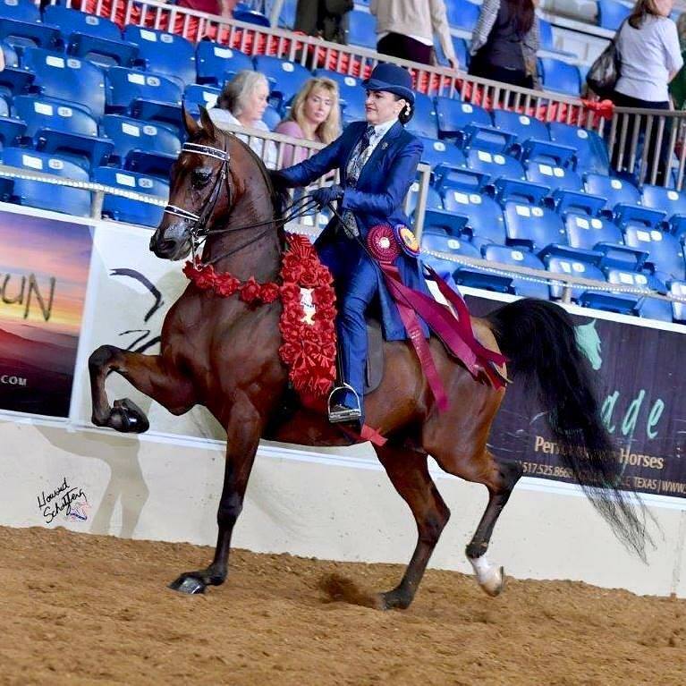 In 2015, Vegaz dominated the Amateur Maturity division, siring the unanimous U.S. National Champion English Pleasure AAOTR Maturity horse, SD Graceland, as well as the Reserve National Champion, Man About Vegaz VA, and two more of the Top Five in the class. To top it off, he also sired the U.S. National Champion Country English Pleasure AAOTR Maturity winner, CP Dance Til Dawn! Fast forward to the 2019 U.S. Nationals—Vegaz get won five national championships and three reserves. Life Inthe Fazt Lane was the Reserve National Champion in open English Pleasure with CSP Adriana finishing right behind him in third place. She was also a unanimous section winner in the 40 & Over English Pleasure. Two of the national championships were earned by SD Graceland, who was listed by AHT as the “winningest Purebred English horse in 2018.”
