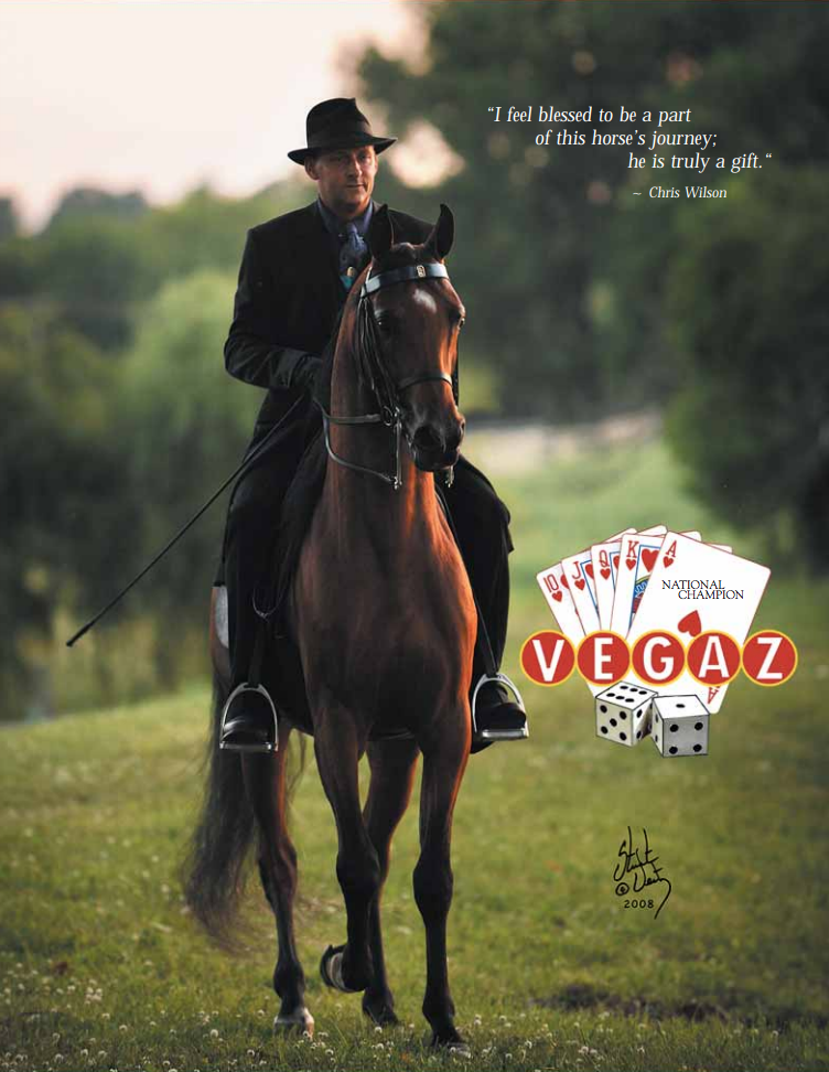 Doug Schultz explains, “Our wonderful friendship definitely is the story. I knew Chris, and when I bred my first mare to Vegaz in 2008, my friendship with Ken got started. We’re excited about the Vegaz offspring that are making their names as show horses. It’s been very rewarding for those of us who have been fans of his for a long time and he is the catalyst for why we put the partnership together.” Ken Knipe couldn’t agree more. “Because of this amazing stallion, I have had many great friends brought into my life,” he relates. “Our new collaboration cements two of my closest friends into a partnership, and now the three of us get to cheer on the Vegaz offspring at shows together. Nothing could be better!”