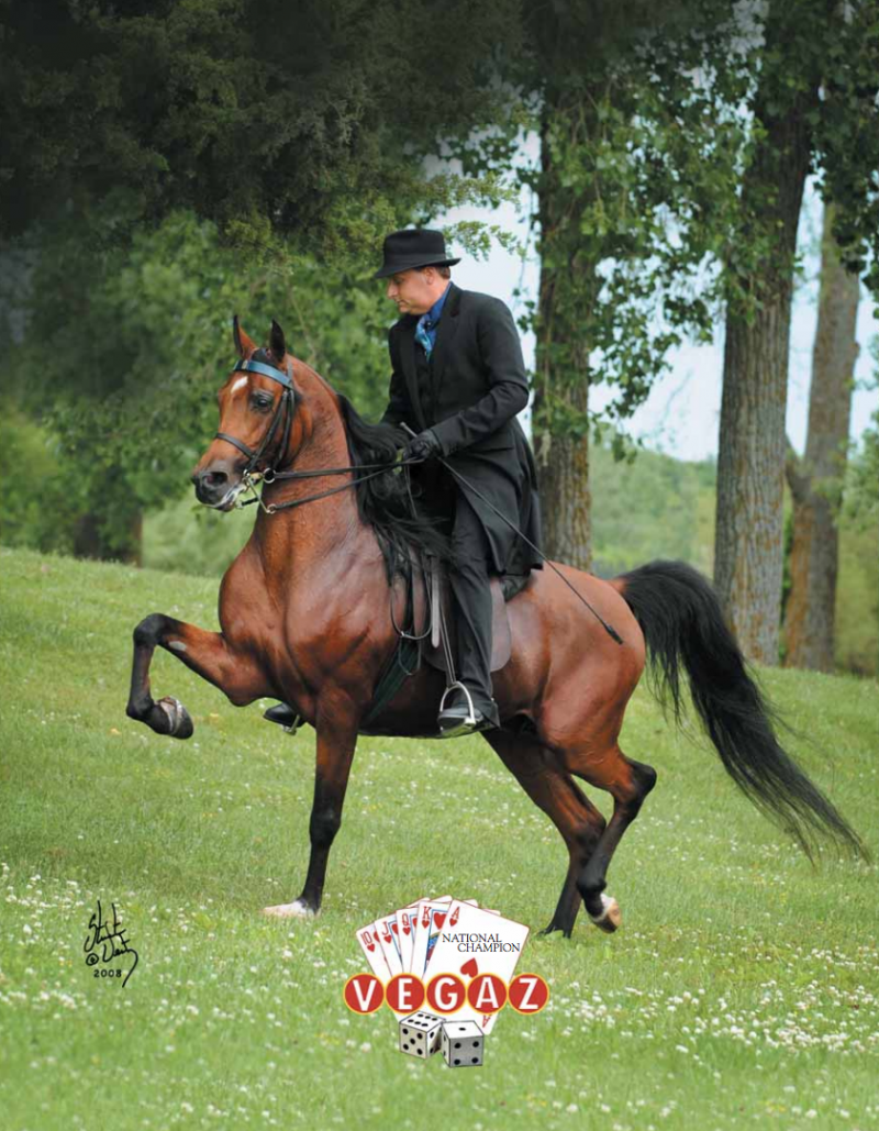 Trainer Ryan Strand showed the Vegaz daughter Best of My Love to the 2019 U.S. National Champion Country Pleasure Driving title. “Vegaz has been a game-changer for my business,” he avers. “He adds a little more hind leg, a little more strength—things that the breed is in dire need of. As I travel to look at horses, I am also seeing extremely nice young horses from Vegaz daughters. The history books will show him to be both an outstanding sire of show horses and of the broodmares who produce them.”